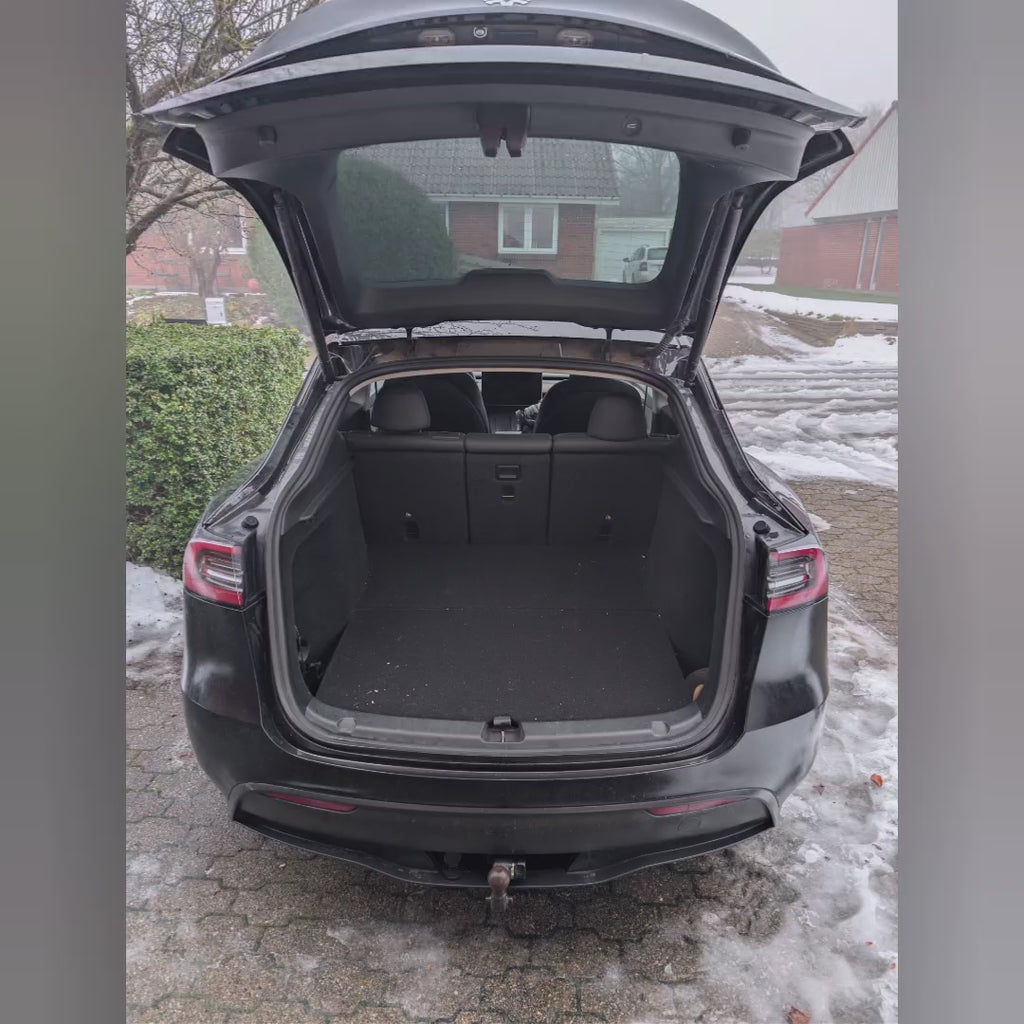 Modulet leveres med spændestropper og ekstra fødder, så du kan hæve boxen lidt hvis nødvendigt, og spænde den fast til bilens hængsler – hvilket forhindrer at den tipper under brug eller ved kørsel.