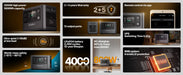 LiFePO₄-batteriet giver over 4000 cyklusser og lang levetid. Det avancerede BMS-system (Battery Management System) overvåger batteriets status i realtid og beskytter mod overopladning, overophedning og kortslutning. P110-E er bygget til sikker brug – både hjemme og på farten.